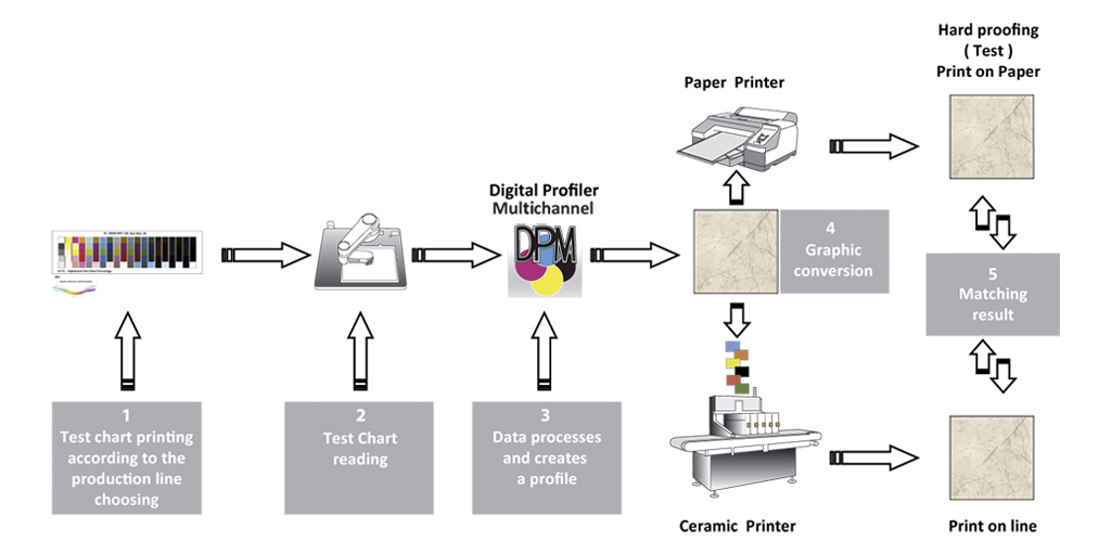 Digital Design, thanks to the experience of expert operators, has developed some software including the multi-channel Digital Profiler Software for the creation of ICC color profiles (RGB, CMYK and multichannel). Thanks to a new graphic interface. It is the latest and most powerful tool for obtaining the best quality and performance from our digital technologies. We have also added a software called the RPD (Remote product development) program overcomes the problem of physical distance and offers an opportunity to revolutionize the ceramic industry’s approach to R&D. It’s a new tool available to tile manufacturers and glaze suppliers that will allow them to take a further step towards a smart manufacturing model.